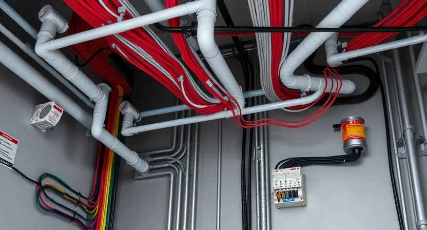 Используйте кабели с рассчитанным сечением под нагрузку, соответствующие таблицам (медь). Не допускайте кабелей с заниженным сечением или плохой изоляцией. Придерживайтесь норм по сечениям: освещение — 1.5 мм², общие розеточные группы — 2.5 мм², кондиционеры/бойлеры — 2.5 мм², варочная панель однофазная — 6.0 мм², вводной кабель — 10–16 мм². Кроме того, применяйте скрытую проводку с использованием гофрированных труб, УЗО/дифавтоматы в мокрых зонах и сохраняйте исполнительную схему после работ.